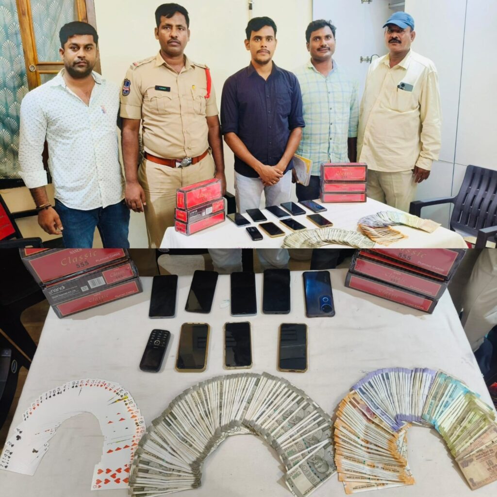 ఈ దాడిలో కార్పొరేటర్ భర్త గుజ్జుల మహేందర్ రెడ్డితో సహా మరో 10 మంది(ముగ్గురు మహిళలు)ని అరెస్టు చేసి వారి నుండి రూ.60 వేలు, 9 సెల్ ఫోన్లు స్వాధీనం చేసుకున్న పోలీసులు