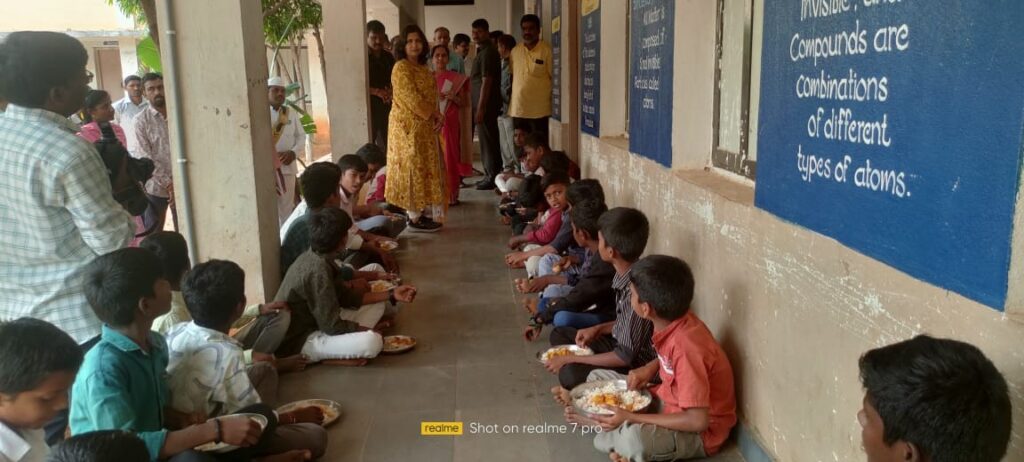 మధ్యాహ్న భోజనం చేస్తున్న విద్యార్థుల దగ్గరికి వెళ్లి భోజనం ఎలా ఉంది ? భోజనం మెనూ ప్రకారం అందిస్తున్నారా అని అడిగి తెలుసుకున్నారు. ఈరోజు మధ్యాహ్నం భోజనం వెజిటేబుల్ బిర్యాని అని విద్యార్థులు చెప్పారు.